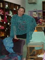 This is Chloe, aka C., one of the co-owners of Purlescence, where we had our knitting group meeting tonight (and where I was really, really, really hoping she’d show up. Funny, that.) One of the regulars was exclaiming, “She picked out the yarn last Friday?!” Well. Yeah. I didn’t offer her before that, so how was she going to do it sooner?