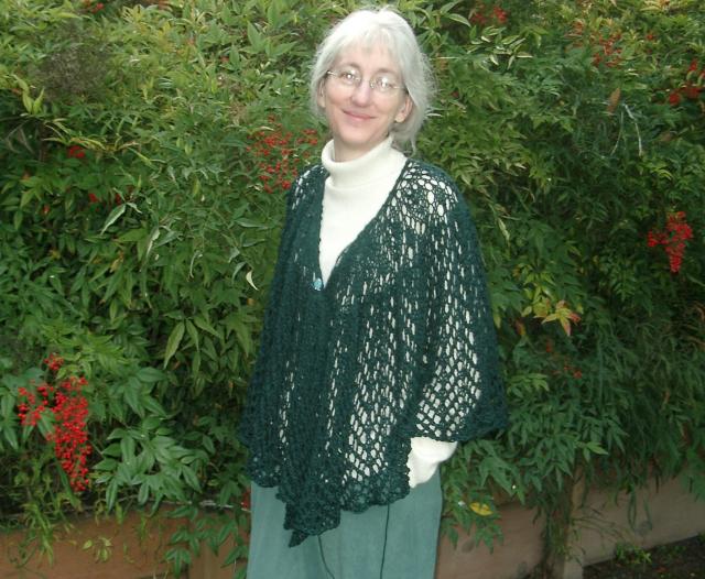 The red Peace shawl shown here? I made it for his wife Johnna. (Her computer was down that week.)