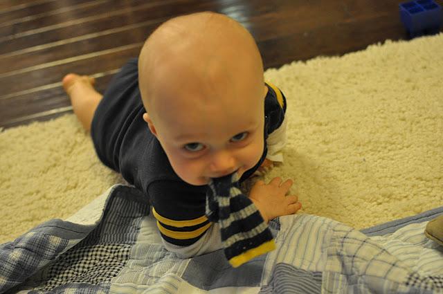Parker’s getting ready to walk. Not quite there yet, but working on it. The next couple of pictures were of his small cousin trying to encourage him up and him going plop, but those came out blurry–moving too fast.