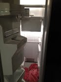 (Ed. to add, and then I decided to be helpful and try again with the hairdryer on the freezer coils, most of which happened while I was at knit night. Did you know the back of a hairdryer could suck your hair into it? I did not. I know now. And yes, there were a fair number of hairs that after everybody’s best efforts for quite some time could only be cut off.)