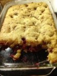 Meanwhile, she rinsed the raspberries; we had about 10 oz left to play with. We patted them dry over and over with paper towels. Then I sprinkled them across the top of the cake (you have to work fast with that recipe) and about 1/4 c brown sugar over them.