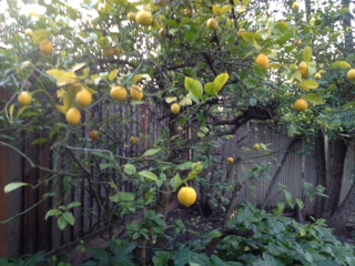 A friend of mine who moved here a few years ago posted a picture on Facebook of her toddler reaching up into a thicket of green leaves (her tree looks much younger than mine) for a big, juicy-looking lemon.