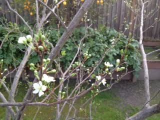 It can take its time to bring out the rest, though–our long and much-needed bout of rain starts tonight and I figure that short of trying to jury-rig a beach umbrella over the trees, whatever is pollinated is pollinated and that will mostly b
