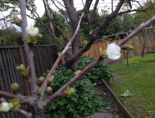Top, right, and left, I’m trying to give a better sense of the whole of the mango. The new buds at the top? They weren’t there at the beginning of the week. We had a three-day heat wave and it actually hit 94.7 degrees yesterday–in March. So strange. The plant life took off all over the yard.