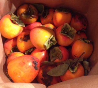 So I confessed to the one neighbor that I’d had an ulterior motive in asking his wife if they needed help with the picking: I love Hachiya persimmons, and I wanted to thwart those corvids.